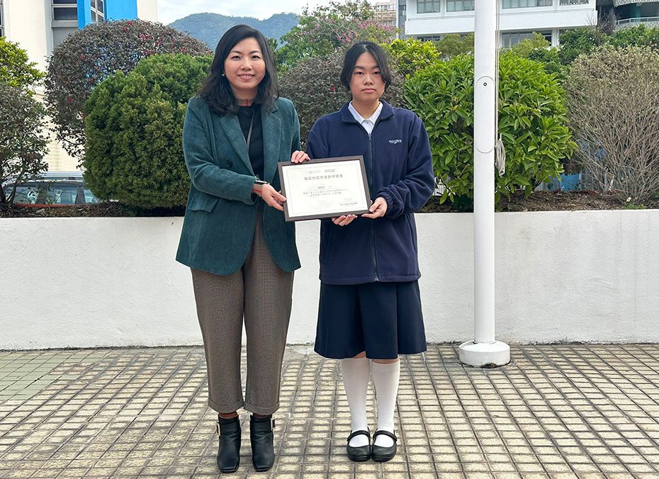 黃廷方獎學金由黃廷方慈善基金設立,旨在嘉許勤奮好學、成績優異、品格端正、誠實守信,並積極參與校內活動及公益服務的中學生。獲獎學生獲發港幣6,000元及證書,以鼓勵他們持續追求卓越、發揮潛能。本校4A張希兒同學憑優異表現榮獲此獎項。 比賽/活動 (舉辦機構) 項目/獎項 獲獎名單 黃廷方獎學金 2025 獎學金六千元 4A 張希兒
