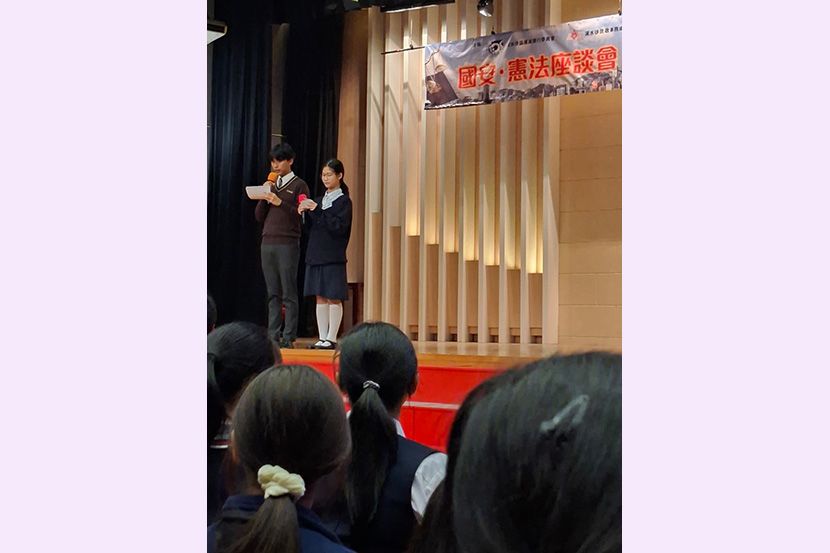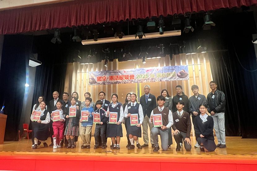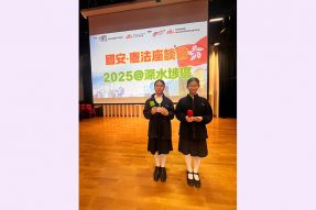 4/12/2025,深水埗區撲滅罪行委員會及深水埗民政事務處舉辦座談會,講解國家憲法及國安資訊,邀請區內中小學參加。由莊校長與洪嘉儷、黎志剛、王婉靖及劉苡喬四位老師,帶領領袖生及初中班風紀共24人參與。二智楊雅喬、四智關鈺螢獲邀擔任活動司儀。 同學認真聽講,踴躍參與問答環節。獲得紀念品外,更增進了對國家憲法、港區國安法和維護國家安全條例的認識;了解憲法和香港的關係,亦提升了維護國家安全的意識。