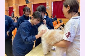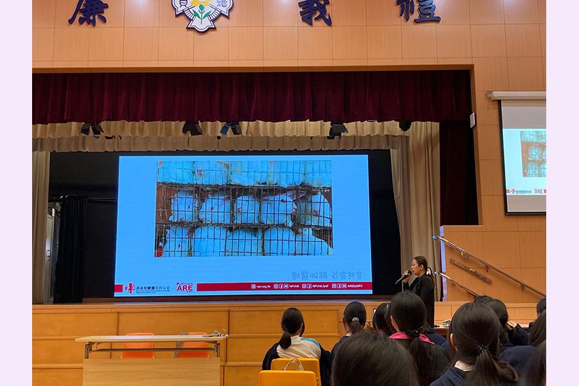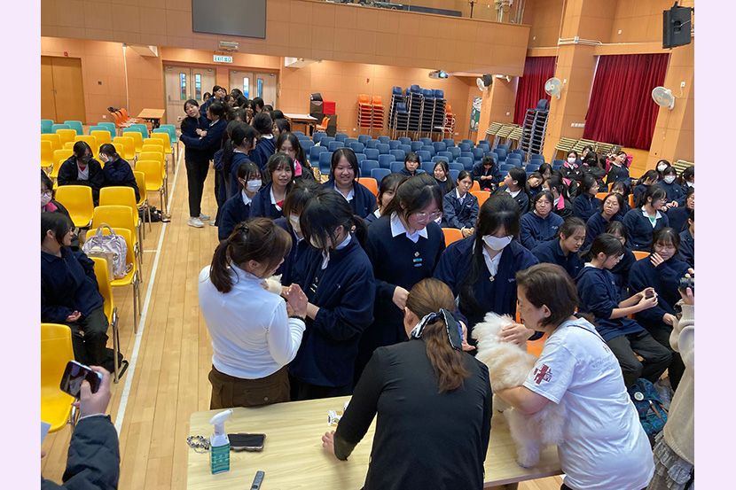 公民教育組於5/12聯同個發科為中五同學舉辦有關動物經濟的講座。當日除了邀請「非牟利獸醫服務協會」的代表,協助講解當動物涉及經濟利益時背後引申的種種問題外,還有兩位特別嘉賓到訪本校,分別是被遺棄的貴婦狗「QQ」及在繁殖場拯救出來的長毛芝娃娃「貝貝」。透過領養牠們的主人代為發聲,講述被領養前的悲慘遭遇及對餘生的影響。幸好兩位經過現任主人的悉心照顧後都過著幸福的生活。講座期間各同學都表現專注,完結後除了把握時間與兩位嘉賓互動外,更以輕柔的掌聲來歡送各位嘉賓,以免嚇怕兩隻可愛的小狗,盡顯同學細心體貼的一面。
