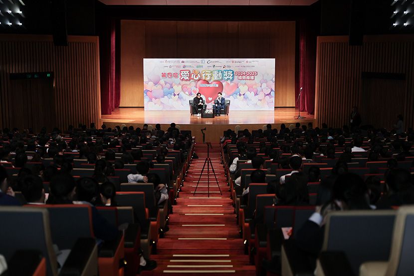 第四屆「愛心行動獎2024-2025」頒獎典禮,已於2026年1月18日下午假香港會議展覽中心順利圓滿舉行。當日榮幸邀請到民政及青年事務局青年專員陳瑞緯先生、中聯辦教科部二級巡視員鄭錦鵬先生、青年發展委員會副主席梁毓偉先生及活動大使張小倫先生親臨主禮,本校共四位學生獲得大會頒發的嘉許證書,以示表揚。當日除了頒發證書給所有獲提名的學生外,活動大使—2024年香港十大傑出青年及前香港男子擊劍運動員張小倫先生亦擔任分享嘉賓,與得獎學生分享他在奮鬥與服務社會過程中的心路歷程。