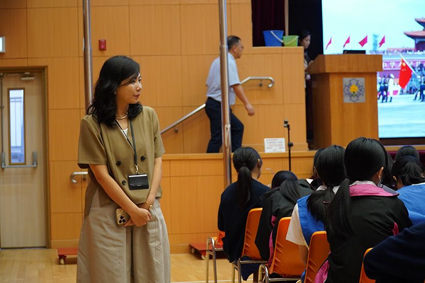 為紀念中國人民抗日戰爭暨世界反法西斯戰爭勝利80周年,公民教育組及國家安全教育專責組安排校長、副校長、全級中一級、六望班學生及隨堂老師,到禮堂出席典禮直播,由公民科科主任為學生進行即時旁述。