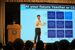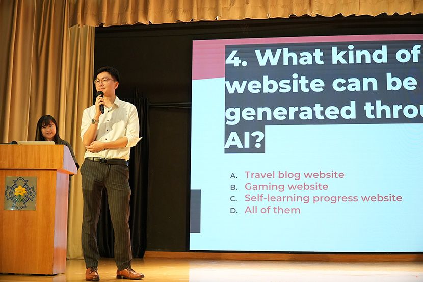 本校舉辦創科分享會,邀請 Cyberport University Partnership Programme Award 得主 Mark Ueno 主講。Mark 曾於創新科技比賽獲獎及完成海外交流。他分享研發 AI 智能滑鼠 的歷程及應用,鼓勵學生積極面對挑戰,勇於創新。活動中 Mark 捐出20多 部 AI 滑鼠贈予學生,以推動科技教育。同場亦邀請學姐 劉嘉明 分享成長經驗,勉勵學妹自律自信、努力向上。學生從中了解 AI 的實際應用及創科精神,獲益良多。