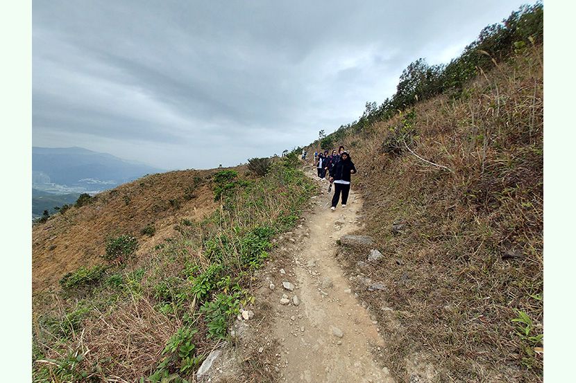 儘管天氣不穩,南脊坡度陡峭又因細雨而濕滑,為行程增添不少挑戰,但同學們仍保持積極心態,互相扶持,穩步向上。當雨勢漸止,雲霧散開時,遠處海灣與山巒若隱若現,山色如水墨般靜美。回望來時路,只見層層山巒漸次沒入雲煙之中,景致詩意盎然,也令同學更深切體會到堅持帶來的美好成果。
