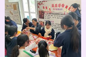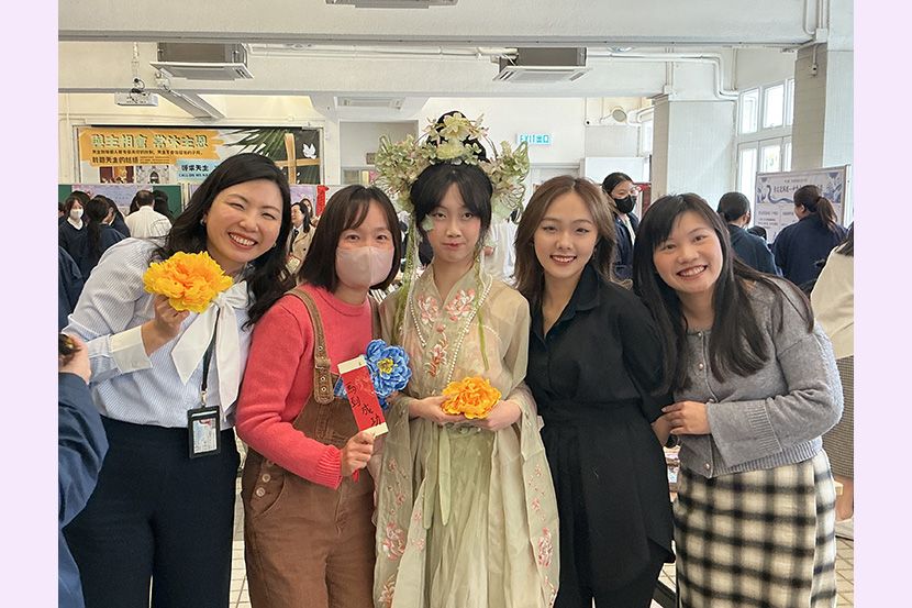 活動現場氣氛熱烈,同學們踴躍借閱主題書籍,從文字中追尋中華文化根源;中文科透過一系列中華文化攤位,如剪紙、青花瓷、中國傳統服飾展示等攤位,將傳統美學具象化;中國文學科則舉辦染扇攤位,以水為引,以漆作畫,讓同學在水墨交織間發揮創意,製作獨特的漆扇;而社工組與家教會籌備的湯圓攤位,則由義工家長傳遞溫暖的團圓心意。
