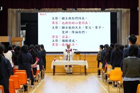 本年度中六祝福彌撒由鍾沛能神父主禮。鍾神父在講道中勸勉畢業生好好學習,做個善良正直的人。禮儀由中六學生誦讀信友禱文,別具意義。最後神父逐一為中六各班覆手祈禱,呼求天主聖神的恩寵臨在,祝福她們考試順利。整體而言,場內師生安靜專注,禮儀時間控制得宜。
