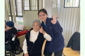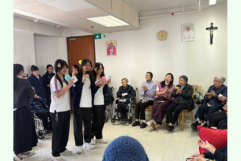 隨後,同學們前往共享空間開展服務環節,為多位長者修女獻上精心準備的歌舞及魔術表演。表演結束後,同學致送親手製作富含天然成分的潤手霜,為修女們送上溫暖的關懷。在交流期間,大家驚喜地發現不少長者修女竟是德貞的老學姐。這份跨越年代的「師姐妹」情誼讓修女們深受感動,她們對師妹們的熱情與心意給予了極高的讚賞。
